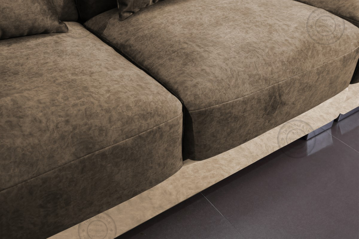 Alicante är en modern designad divan soffa i sammet tyg för framtiden. Soffan har tre nackstöd, förvaringsplats, mediaspelare, bluetooth uppkoppling, mobil laddning samt hela 6 avlånga kuddar i samma färg som följer med .