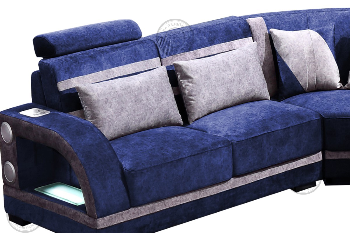 Angi soffa är en lagom stor soffa som kommer med högtalare, Bluetooth uppkoppling, USB samt mobil laddare.