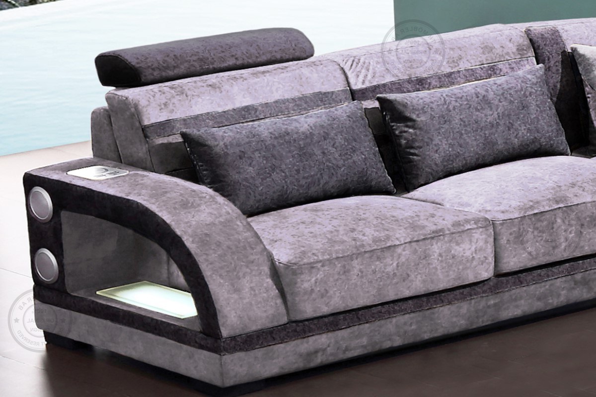 Angi soffa är en lagom stor soffa som kommer med högtalare, Bluetooth uppkoppling, USB samt mobil laddare.