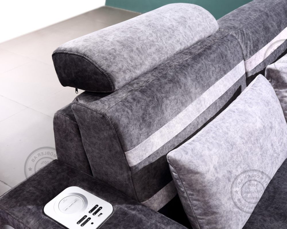 Angi soffa är en lagom stor soffa som kommer med högtalare, Bluetooth uppkoppling, USB samt mobil laddare.
