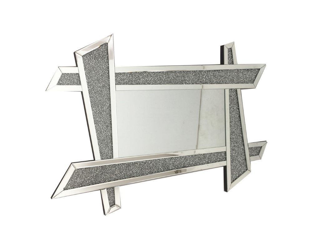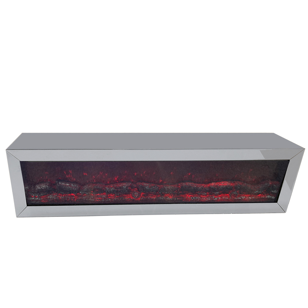 Elegant dekorationskamin kläd i spegel med belysningsfunktion som skiftar i 3 olika färger.
