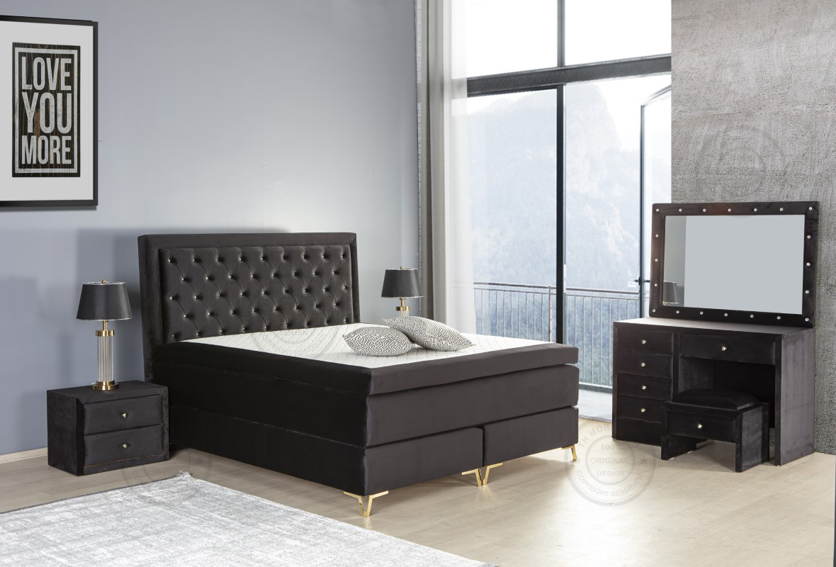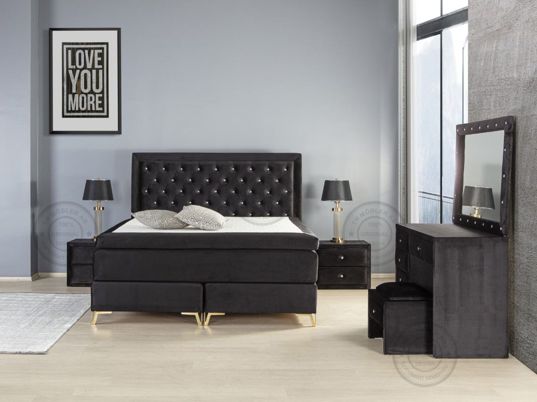 Ett komplett sängpaket med ett 7-zon pocketfjäder system, aluminiumben och sänggavel med nitar!
