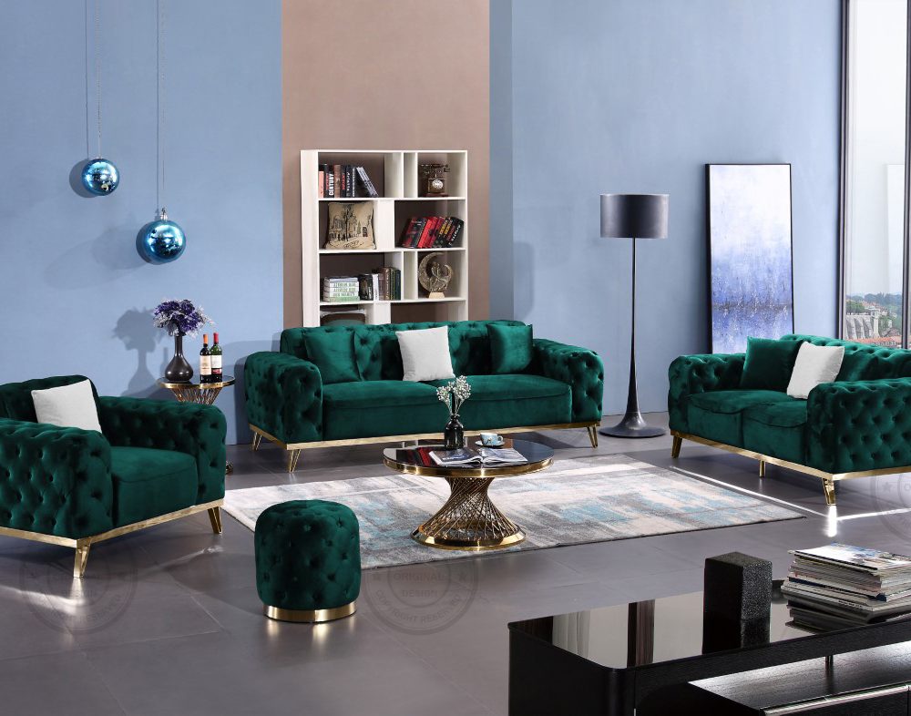 Sara Queen soffgrupp 3+2+1 Sammet Grön